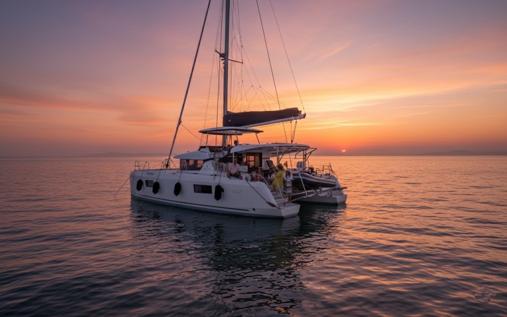 Tres horas navegando entre luz dorada y horizonte abierto. Un momento suspendido entre mar y cielo, diseñado para disfrutar con calma.